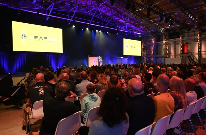 Zie je op het nieuws iets voorbij komen over een aardbeving of een ongeluk waarbij mensen onder het puin zijn geraakt, dan is de kans groot dat het team van USAR.NL (Urban Search and Rescue) naar de plaats wordt afgezonden. Voor hun jaarlijkse ledendag, die afgelopen jaar samenviel met het 20-jarig bestaan, wilden zij niet alleen hun teamleden in het zonnetje zetten, maar ook een keer het thuisfront. In Hangaar2 vonden ze de ideale locatie, zowel qua uitstraling als samenwerking. Natascha Boer, beleidsondersteuner voor USAR.NL , vertelt ons meer.