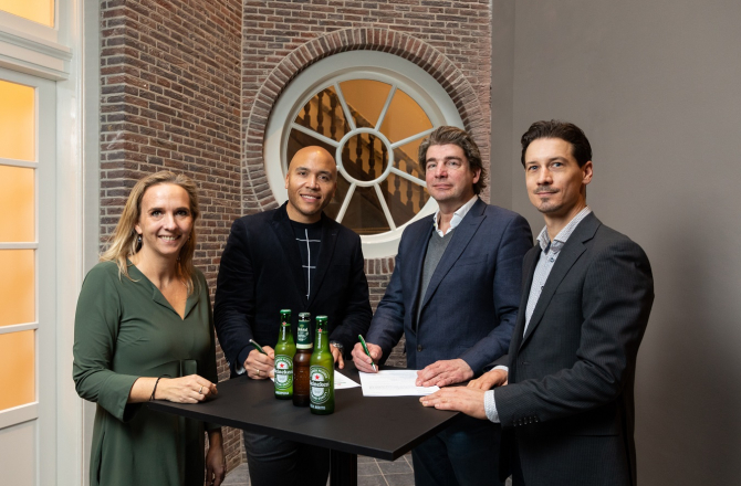 Op vrijdag 20 december 2019 hebben Babs Nijdam (Commercieel Directeur Amerpodia), Clayde Menso (Directeur Amerpodia), Léon van Daalen (Senior Account Manager HEINEKEN Nederland) en Maurice Herms (Regiodirecteur HEINEKEN Nederland) de samenwerking officieel beklonken in het gerenoveerde Felix Meritis.