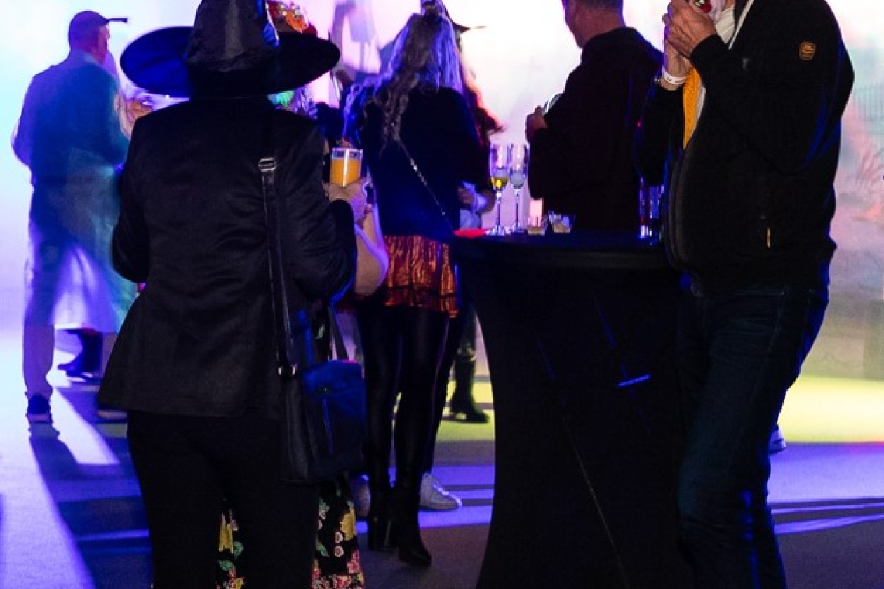 Een dresscode had de personeelsvereniging bewust niet meegeven aan de feestgangers en dat was ook niet nodig. Terwijl ze bij binnenkomst verwelkomd werden door The Addams Family gooide iedereen die nog niet verkleed was de aanvankelijke terughoudendheid direct over boord. Een tafel met maskers en andere gave gadgets in het Halloweenthema kon simpelweg niet genegeerd worden. De twee aanwezige grimeurs hadden het enorm druk, want iedereen prefereerde een ander, passend uiterlijk voor deze bijzondere griezelavond. Complimenten in dit kader waren er ook zeker voor het enthousiaste en toegewijde team van ECC Leiden. Zij schroomden niet om zelf ook mee te gaan in het (gewaagde) Halloweenthema en waren zo echt onderdeel van het feest. ‘Wat we ook heel fijn vonden is dat ze voor het grimeren een aparte, extra ruimte beschikbaar stelden. Hier hadden we niet eens om gevraagd’, vertelt Suzanne.