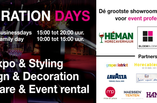 Als bezoeker van de Inspiration Days wordt je verrast op een route langs de laatste trends op het gebied van inrichting, decoraties en verhuurmaterialen. Werkelijk alles komt voorbij, van de laatste technische snufjes tot de nieuwste servies trends. Zowel indoor als outdoor is het ook op culinair gebied een beleving.