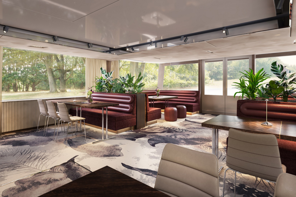 En dat varen kan op allerlei manieren. Adriaan: ‘Denk bijvoorbeeld aan een varende beurs. Zo hoeven de klanten van een bedrijf niet naar een bepaalde locatie toe te reizen, maar komt de beurs gewoon naar hen toe. Dat is weer eens wat anders en scheelt bovendien een hoop reistijd voor iedereen. Wij zorgen ervoor dat we ’s nachts naar de volgende haven varen, dus het is ook nog eens ontzettend efficiënt.’ Daarnaast legt Adriaan uit dat het schip ook als roadshow kan worden ingezet. ‘Dan wordt het een zogenaamde boatshow. Denk aan de presentatie van een nieuw model elektrische auto bijvoorbeeld. Deze kunnen wij op het dak plaatsen om zo te showen aan de gasten. Het effect is spectaculair, zeker omdat de Z9 zelf een en al duurzaamheid en moderniteit uitstraalt.’