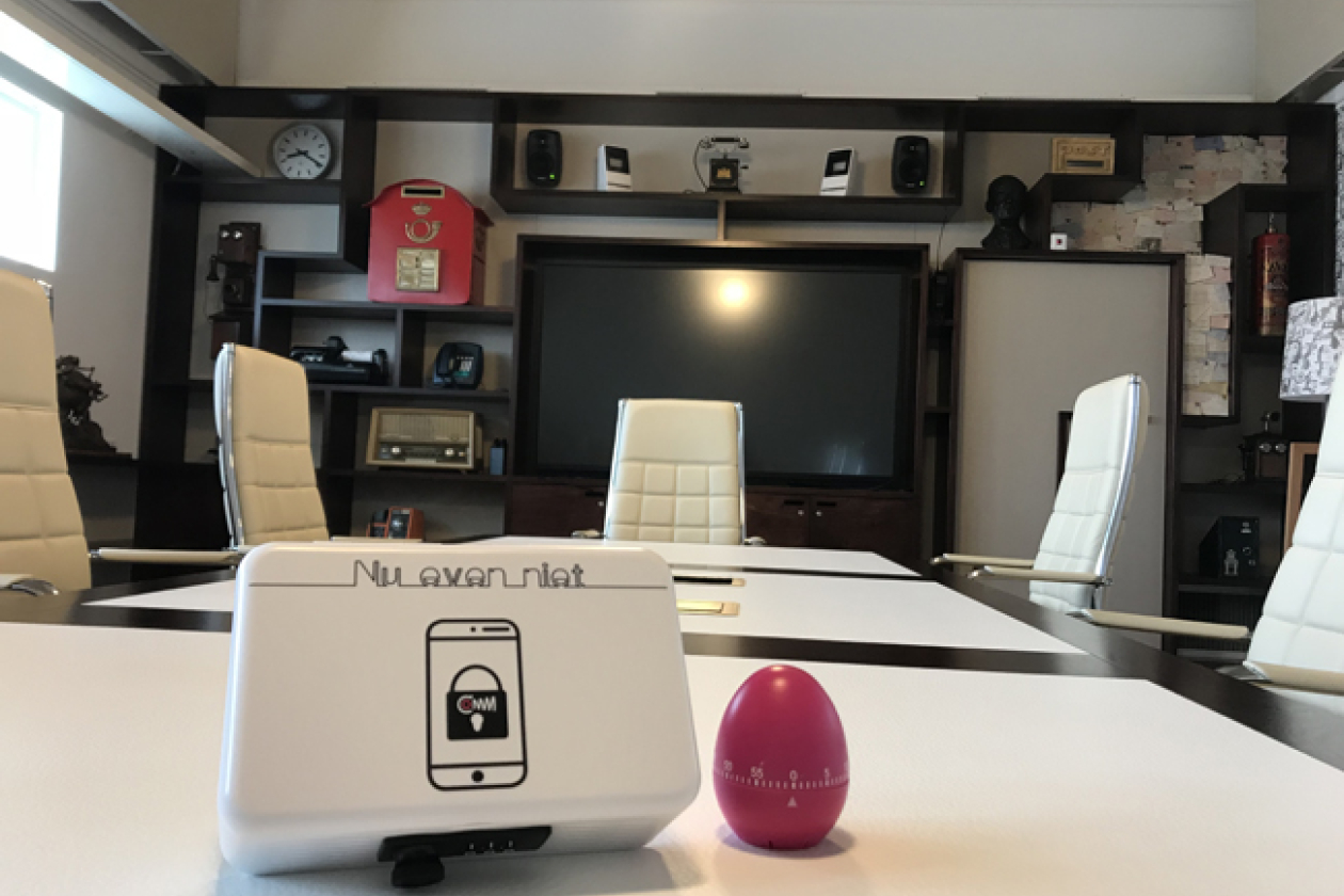 ‘Je bent een hele knappe als je tijdens een meeting de geluidjes of vibraties van je telefoon bij een inkomend berichtje kan weerstaan en niet gaat kijken’, lacht Wouters van den Oudenweijer. ‘Meestal wint nieuwsgierigheid toch van het verstand en daar gaat je focus! Gemiddeld kost het 7 (!) minuten om na een afleiding weer volledig in je concentratie te komen en tijd is kostbaar. Wil je focus behouden en vlot en productief vergaderen, stop dan die meesterlijke verleiders achter slot en grendel in één van onze telefoonkluizen.’