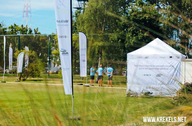 Als trotse partner van Golf beats Cancer zorgt Krekels voor de visuele aankleding op en naast het golfterrein. Met tenten, beachvlaggen, zit-kubussen en opblaasbare zuilen zorgen we ervoor dat het toernooi en de verschillende sponsors goed in de verf worden gezet en de deelnemers het gevoel krijgen werkelijk aan een groot professioneel golf-evenement deel te nemen.