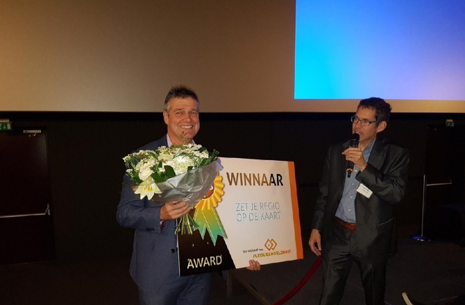Henk van Voornveld, directeur MarketingOost, nam de Zet je regio op de kaart Award 2018 in ontvangst. Vijf sterke regio's en projecten werden ingeleverd. Uiteindelijk won het samenwerkingsverband van de Hanzesteden omdat het bijzonder is dat in een korte periode een bestemming op de kaart is gezet. Gemaakte strategische keuzes werden ook in de uitvoering stevig doorgevoerd. Dit samenwerkingsverband wist uiteindelijk de jury met duidelijke cijfers over behaalde resultaten te overtuigen dat de award van 2018 bij de Hanzesteden thuishoort. Van Voornveld gaf meteen de eer door aan merkleider van de Hanzesteden, Elizabeth Stoit. 'Zij is de grote verbinder achter de Hanzesteden.'