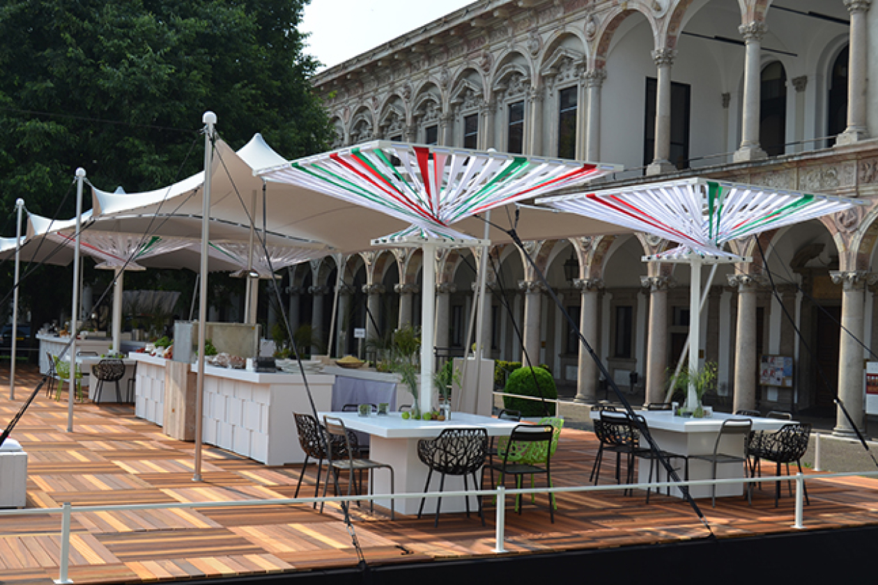 In het Rijksmuseum in Amsterdam creëerden we een diner voor 150 personen gesitueerd bij de Nachtwacht van Rembrandt. Om 17.00 uur mochten we starten met de opbouw en om 19.00 uur moest het klaar zijn. Om 22.00 uur konden we de boel weer meenemen. Zulke projecten moeten altijd voldoen aan bepaalde specs en meubilair wordt soms voorgeschreven. Als ik echter het gevoel heb dat ik iets veel mooier kan creëren dat aan dezelfde specifieke eisen voldoet dan stel ik dat voor en zet dat in. In Berlijn moest binnen 9 uur een kale landingsbaan worden opgetoverd tot een sfeervol groen park en voor Nike hebben we een vliegtuighangar omgetoverd tot restaurant voor 1.200 man. Gigantische metamorfoses bewerkstelligen in zeer korte tijd is wat ik het liefst doe. Studio 100 brengt de musical 40-45 in Puurs bij Antwerpen. Hiervoor leveren we de meubelen, het decor en de buiten entree. Dit materiaal blijft zo’n 2 jaar weg.