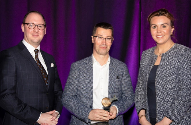 De complimenten van de jury gingen vergezeld van een bronzen beeld, waarin de typische 'B' van Brightlands verwerkt is, vervaardigd door kunstenaar Wil van der Laan.