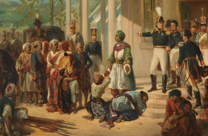 Beeldcredits: Rijksmuseum, De onderwerping van Diepo Negoro aan luitenant-generaal baron de Kock, Nicolaas Pieneman, ca. 1830 - ca. 1835