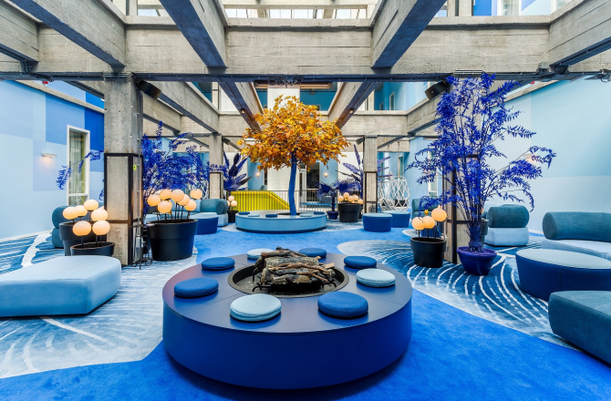 Op de tweede verdieping ontvouwt zich een mysterieus tafereel. Het betonnen frame van dit voormalige pakhuis is omgeven door een bevroren tuin. De ontelbare blauwtinten hebben een betoverend effect op alle aanwezigen. Rondom een opvallend oranje boom zijn verschillende zitplaatsen gecreëerd, waar je je voor even in een andere wereld waant. Buiten geniet je vanaf het prachtige houten dakterras van het fantastische uitzicht.
