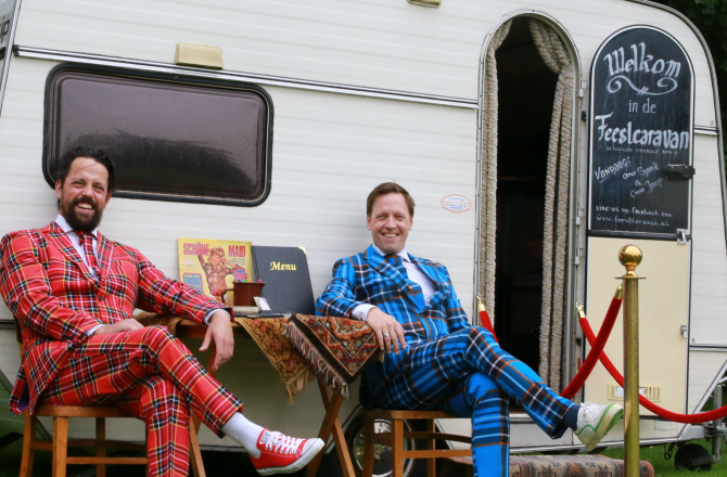Sindsdien rijdt de caravan van feestje naar feestje, van bruiloft tot bedrijfsevenement. Het geheim? ‘Acht vierkante meter caravan biedt precies genoeg bescherming aan feestgangers die stiekem wel willen zingen, maar niet af willen gaan bij hun collega’s,’ legt Joep, alias ome Joop, uit. En uiteraard zijn de DJ en de insmijter zelf van onschatbare waarde. ‘Naast ons oerinstinct om muzikale feestjes te bouwen, hebben we allebei ruim 15 jaar ervaring in de evenementenbranche. We kennen het klappen van de zweep, dat scheelt eventorganisatoren een hoop geregel.’