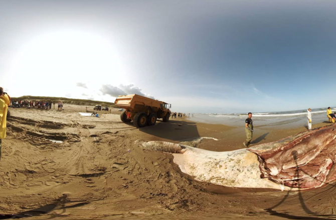 De beelden werden gemaakt door het Texelse videoproductiebedrijf Videolux Productions. Mede-eigenaar en cameraman Gerhard Smit: 'We hebben toevallig sinds kort een professionele 360º camera in huis, ten behoeve van de productie van een serie toeristische VR-video’s van ons eiland. Toen het nieuws kwam dat er een vinvis was aangespoeld, besloten we direct om 360º opnamen te maken van het dier.'